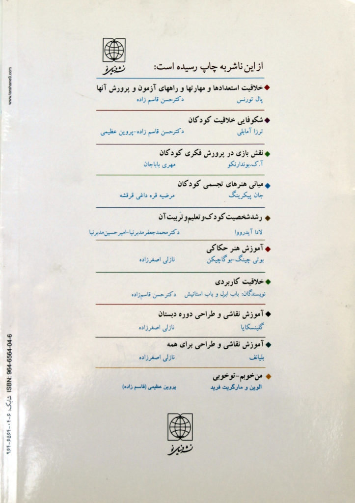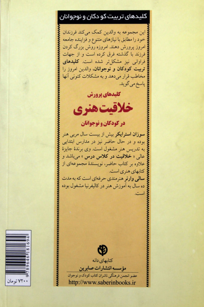 برای مربیان هنر کودک و والدین نوشته شده است. نویسنده کتاب در چهاربخش به زمینه های اساسی و مهم فعالیت هنری کودکان به عنوان فعالیتی خلاقانه می پردازد.