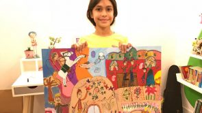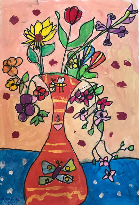 تاریخ انجام اثر نامشخص است. تا قبل از پایان سال 1397 انجام شده است. در سن 9 سالگی توضیحات: این اثر با الهام از اثر مارک شاگال کشیده