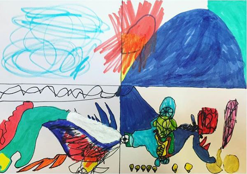 داستان و تصویرسازی توسط کودک خلق شده است.
