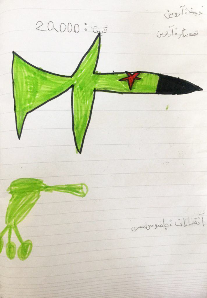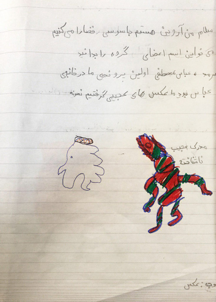توضیحات: داستان و تصویرسازی اثر توسط کودک خلق شده است.