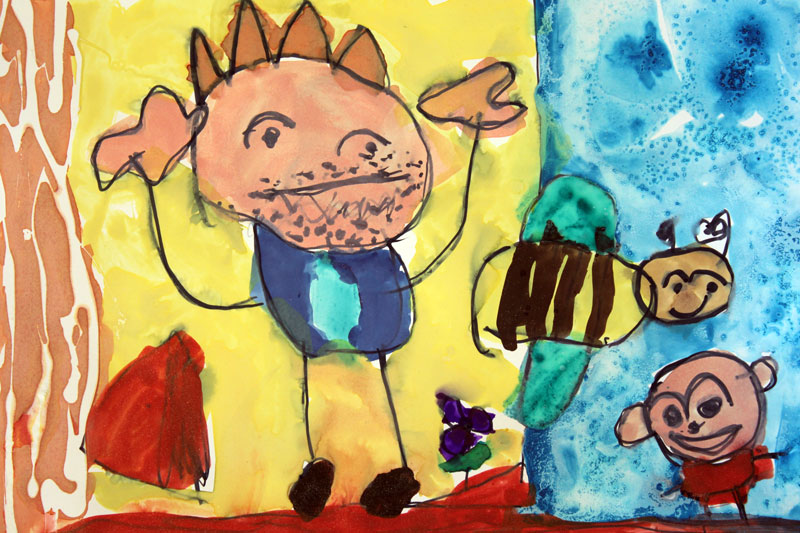 روایت کودک: پادشاه روی نخودی نشسته بود و زنبور از توو دهن نخودی بیرون اومد .پادشاه رو نیش زد و پادشاه بالا و پایین پرید