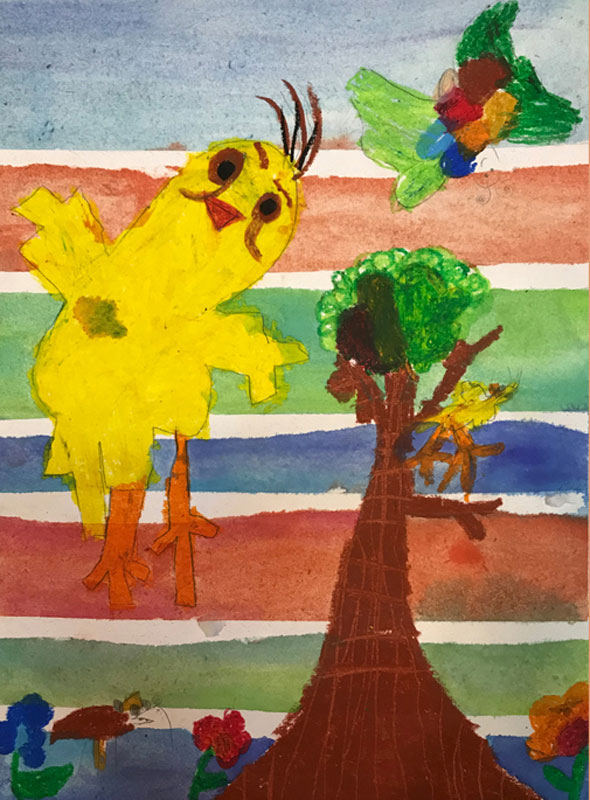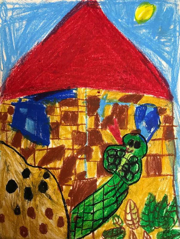 این ورقه های سنگ رو از پای کوه در اردوی سفر به لاسم جمع کرد و روی این سنگ نقش خورشید را کشیده است.